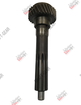 Вал первичный бренда Shaft-Gear на китайские КПП – артикул 1166302001. Размеры: общая длина — 380 мм, длина направляющей под опорный подшипник — 32 мм, диаметр направляющей под опорный подшипник — 25 мм, длина шлицевой части вала — 110 мм, диаметр шлицевой части — 50 мм, количество шлицов 10, диаметр под подшипник первичного вала — 70 мм, диаметр шлицов под ступицу синхронизатора — 100 мм, толщина шлицов под ступицу синхронизатора — 6 мм, количество шлицов — 25, диаметр отверстия под конусный подшипник — 76 мм, диаметр шестерни — 123 мм, толщина шестерни — 38 мм, количество зубов — 28.
