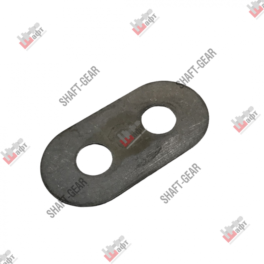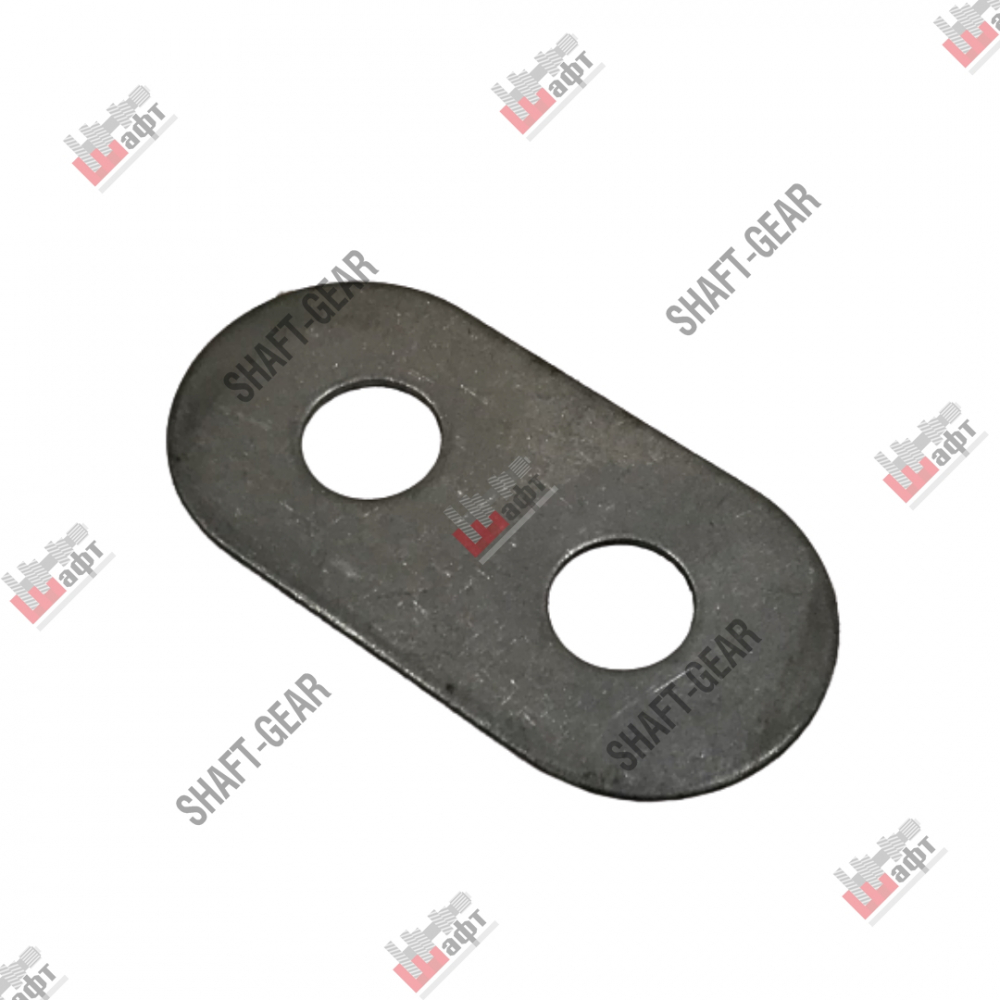 Заглушка стопорная бренда Shaft-Gear на КПП — артикул 1250304353. Размеры: длина — 66 мм, ширина — 33 мм, толщина — 1 мм, длина по центру отверстий — 28 мм, диаметр отверстия — 12 мм.