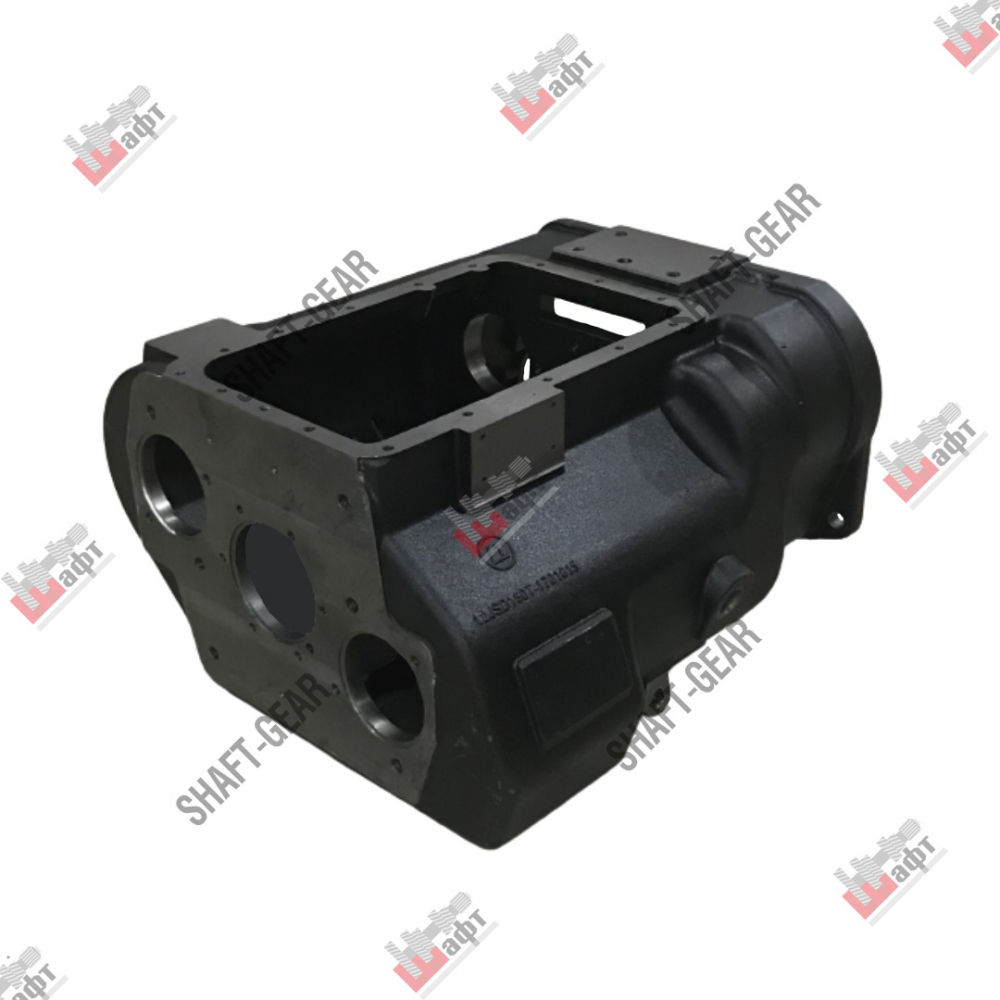 Картер бренда Shaft-Gear на КПП — артикул 12JSD160T-1701015. Размеры: длина — 580 мм, диаметр отверстий под подшипники — 100/110/140/89 мм.