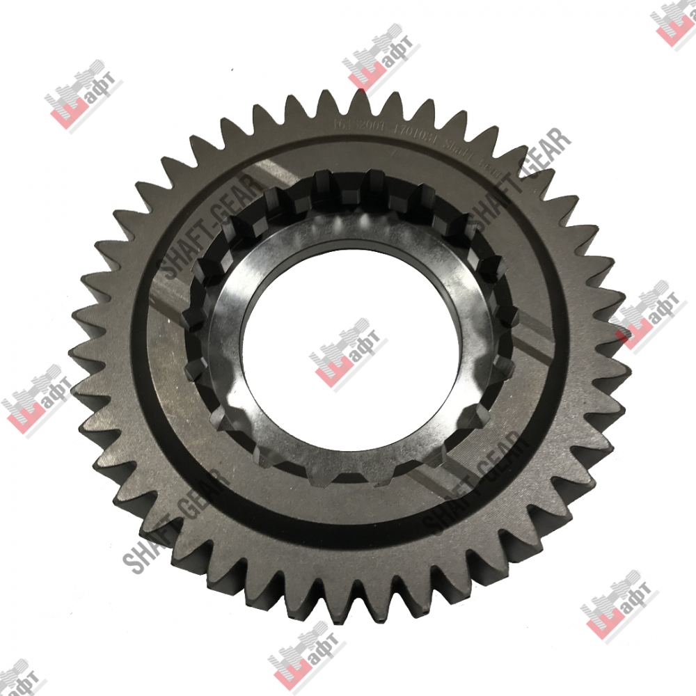 Шестерня 3 передачи вторичного вала бренда Shaft-Gear на КПП — артикул 16JS200T-1701031. Размеры: наружный диаметр — 138,5 мм, внутренний диаметр — 56 мм, толщина — 42, 5 мм, количество зубьев — 44.