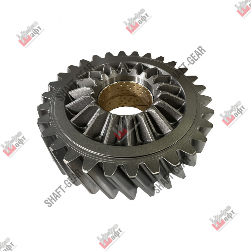 Шестерня редуктора среднего моста ведущая бренда Shaft-Gear — артикул 2502107-A0E. Размеры: наружный диаметр — 225 мм, внутренний диаметр — 70 мм, толщина — 70 мм/82 мм/55 мм, количество зубьев — 30, количество шлицов — 18.