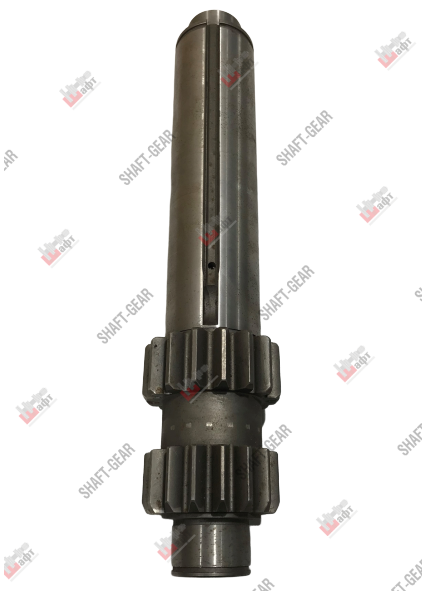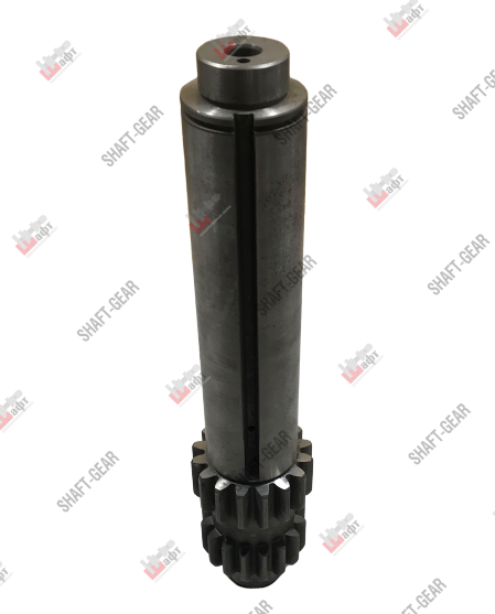 Вал промежуточный бренда Shaft-Gear на КПП — артикул 9JS200T-1701048. Размеры: общая длина — 405 мм, длина рабочей поверхности под шестерни — 245 мм, диаметр вала — 63 мм, диаметр вала под передний подшипник — 45 мм, диаметр вала под задний подшипник — 40 мм, диаметр шлицов под шестерню задней передачи — 79 мм, количество шлицов — 16, диаметр шлицов под шестерню пониженной передачи — 87 мм, количество шлицов — 16.