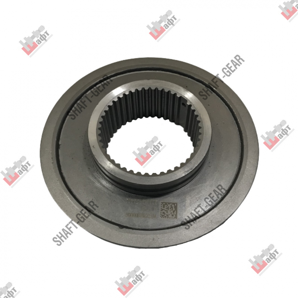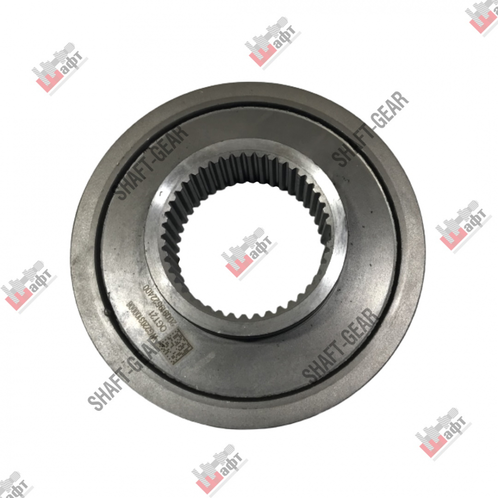 Ступица синхронизатора демультипликатора бренда Shaft-Gear на КПП — артикул AZ2203100006. Размеры: наружный диаметр — 200 мм/110 мм, внутренний диаметр — 91 мм, толщина — 50 мм, количество внутренних шлицов — 43, количество наружных шлицов — 63.