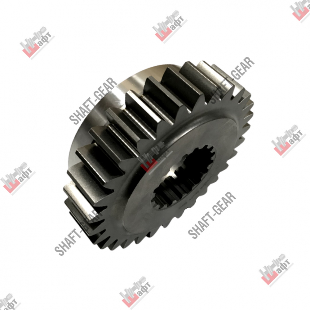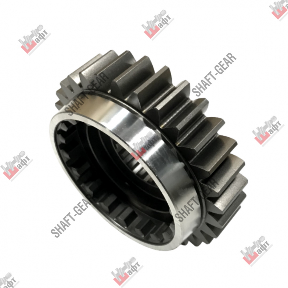 Шестерня ведущая демультипликатора бренда Shaft-Gear на КПП – артикул JS119T-1707030B. Размеры: наружный диаметр — 144 мм, внутренний диаметр — 57,5 мм/102,5 мм, толщина — 57,5 мм/29 мм, количество внутренних шлицов — 18, количество зубьев — 30.