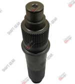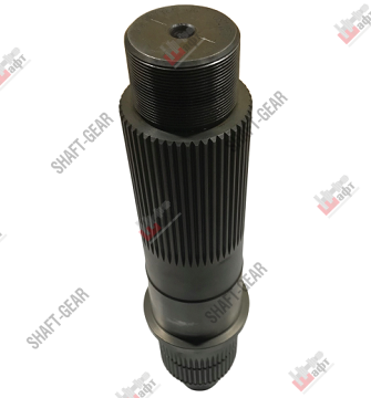 Вал выходной демультипликатора бренда Shaft-Gear на КПП 8JS125T (G5777) – артикул JS125T-1707105-2. Размеры: общая длинна — 330 мм, длинна шлицов под синхронизатор — 45 мм, количество шлицов под синхронизатор — 49 мм, длинна шлицов под фланец — 85 мм, количество шлицов под фланец — 49 мм, диаметр вала — 63 мм/35 мм, длинна резьбы — 34 мм, диаметр резьбы — 50 мм, шаг резьбы — 1,5 мм.