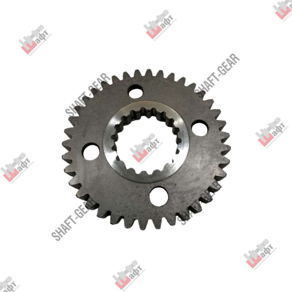 Шестерня бренда Shaft-Gear на КПП — артикул JS150T-1701111. Размеры: наружный диаметр — 193 мм, внутренний диаметр — 82 мм, толщина — 28 мм/25 мм, количество зубьев — 38, количество внутренних шлицов — 18.
