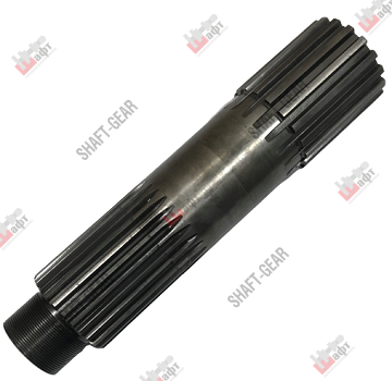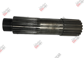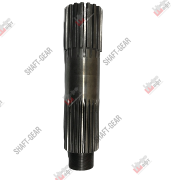 Вал выходной демультипликатора бренда Shaft-Gear на КПП – артикул JS180-1707105. Размеры: общая длинна — 310 мм, длинна шлицов под синхронизатор — 80 мм, количество шлицов под синхронизатор — 18 мм, длинна шлицов под фланец — 95 мм, количество шлицов под фланец — 26 мм, диаметр вала — 68 мм, длинна резьбы — 35 мм, диаметр резьбы — 50 мм, шаг резьбы 1,5 мм.