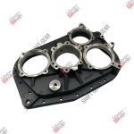 Задняя крышка бренда Shaft-Gear на КПП — артикул JS220-1707015-5. Размеры: диаметр отверстий под подшипники — 120/115 мм, высота — 95 мм, диаметр под пневмоцилиндр — 99 мм.