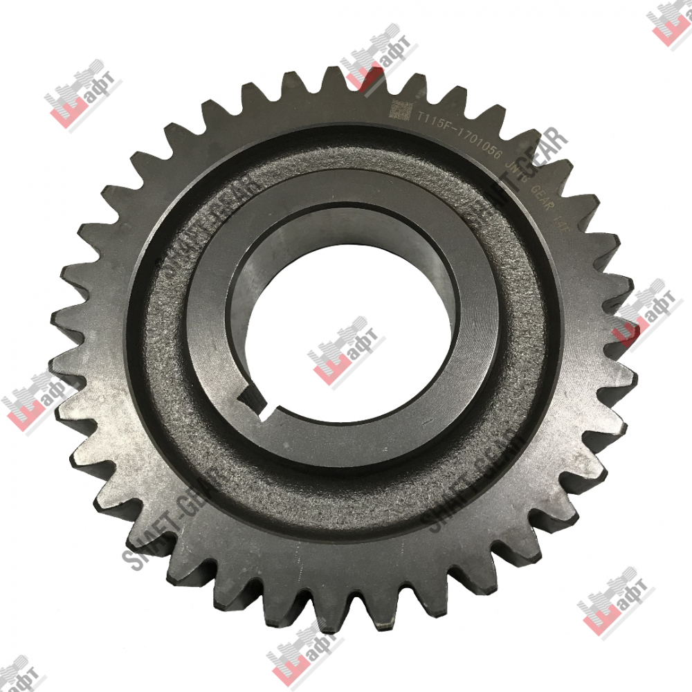 Шестерня ведущая промежуточного вала бренда Shaft-Gear на КПП — артикул T115F-1701056. Размеры: наружный диаметр — 166 мм, внутренний диаметр — 63,5 мм, толщина — 35 мм/31 мм, количество зубьев — 37.