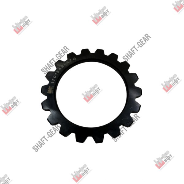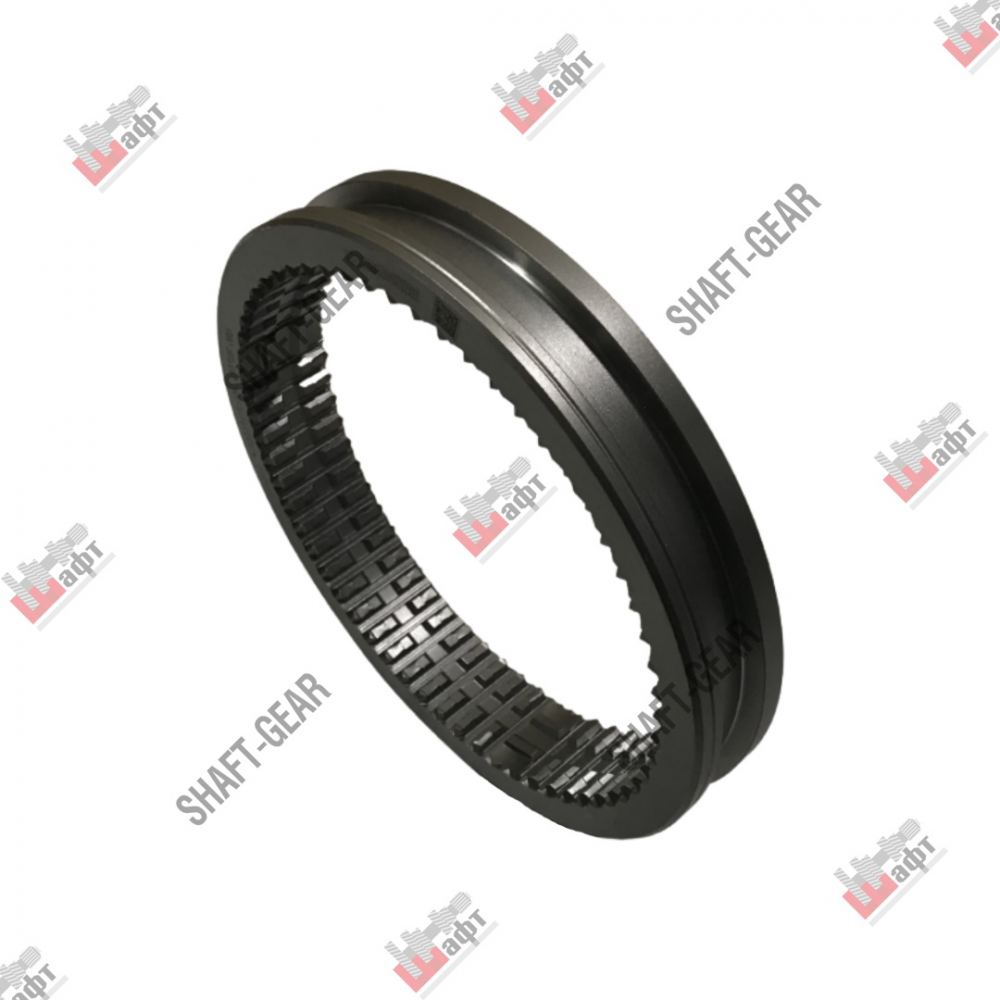 Муфта синхронизатора бренда Shaft-Gear на КПП – артикул WG2210100124/8. Размеры: наружный диаметр — 214 мм, внутренний диаметр — 186 мм, толщина — 35 мм, ширина проточки под сухарь — 16 мм, количество внутренних шлицов — 54 шт.